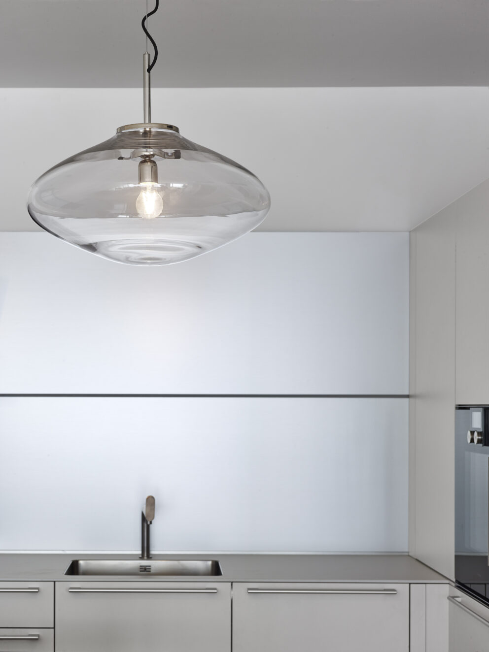 宇宙を漂う円盤のようなDisc。熟練の職人が仕上げるクリスタルガラスにメタルを組み合わせたミニマルでいてエレガントなフォルムは、 どのようなインテリア空間にも上品に美しく組み合わせることができます。
