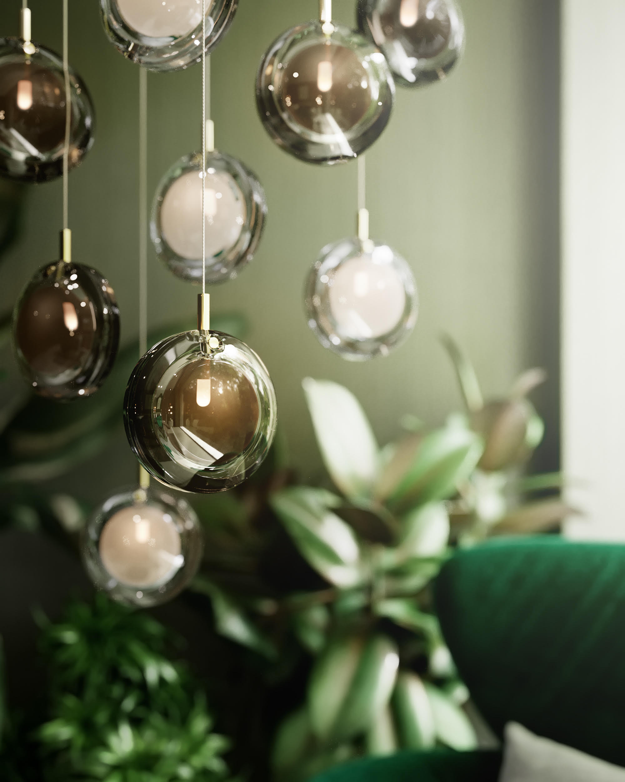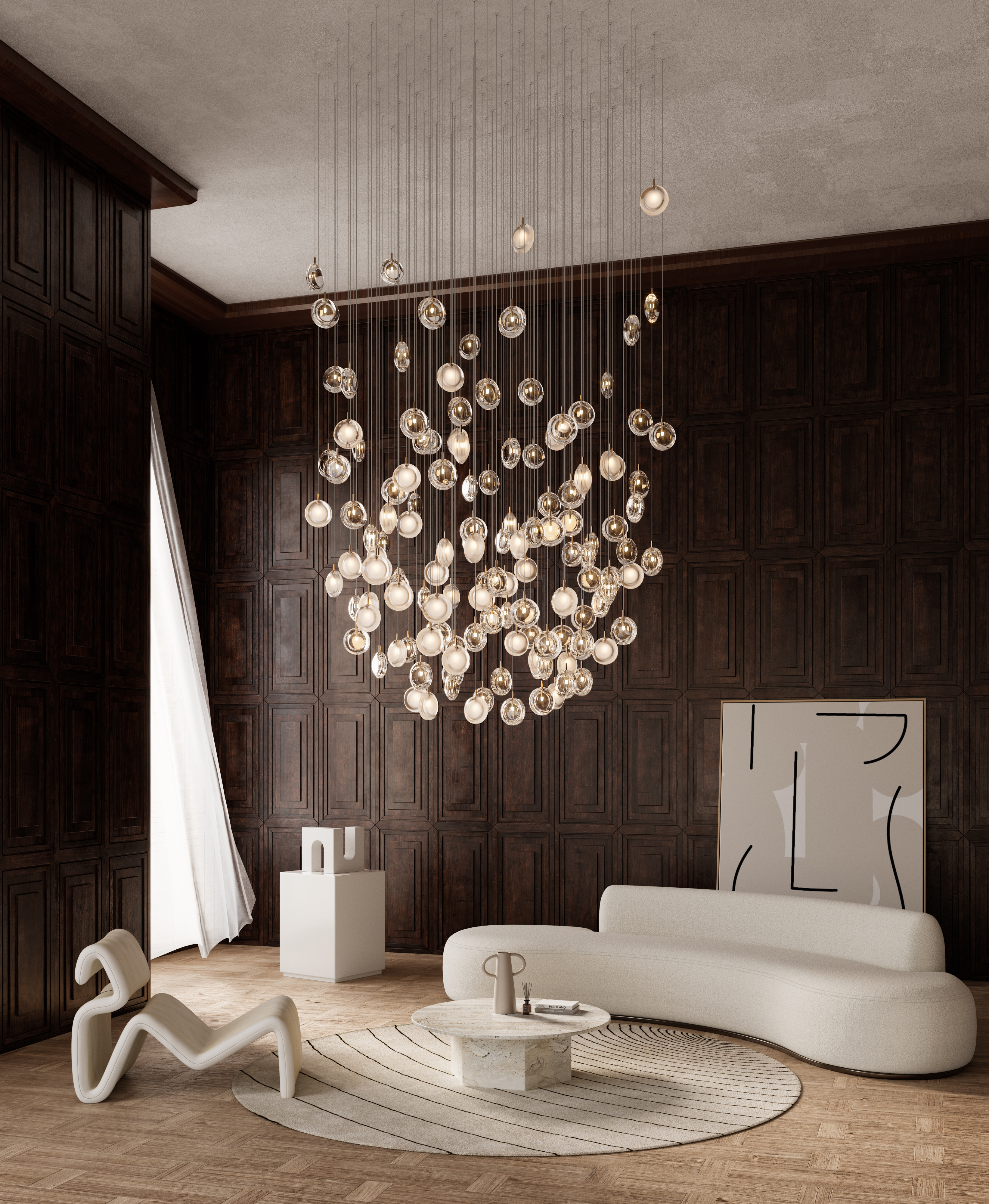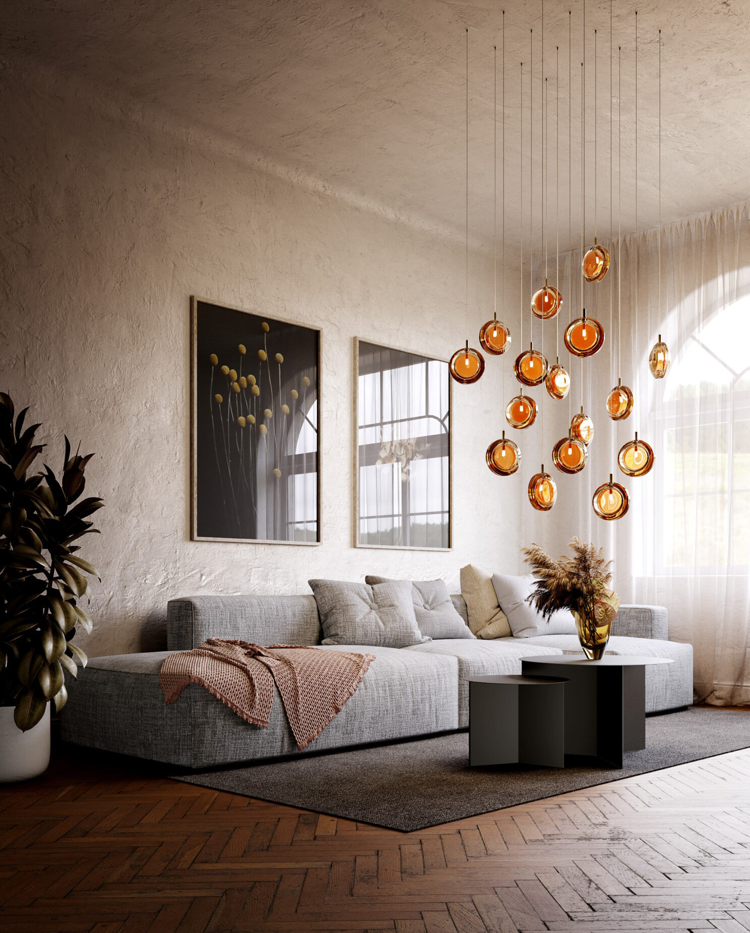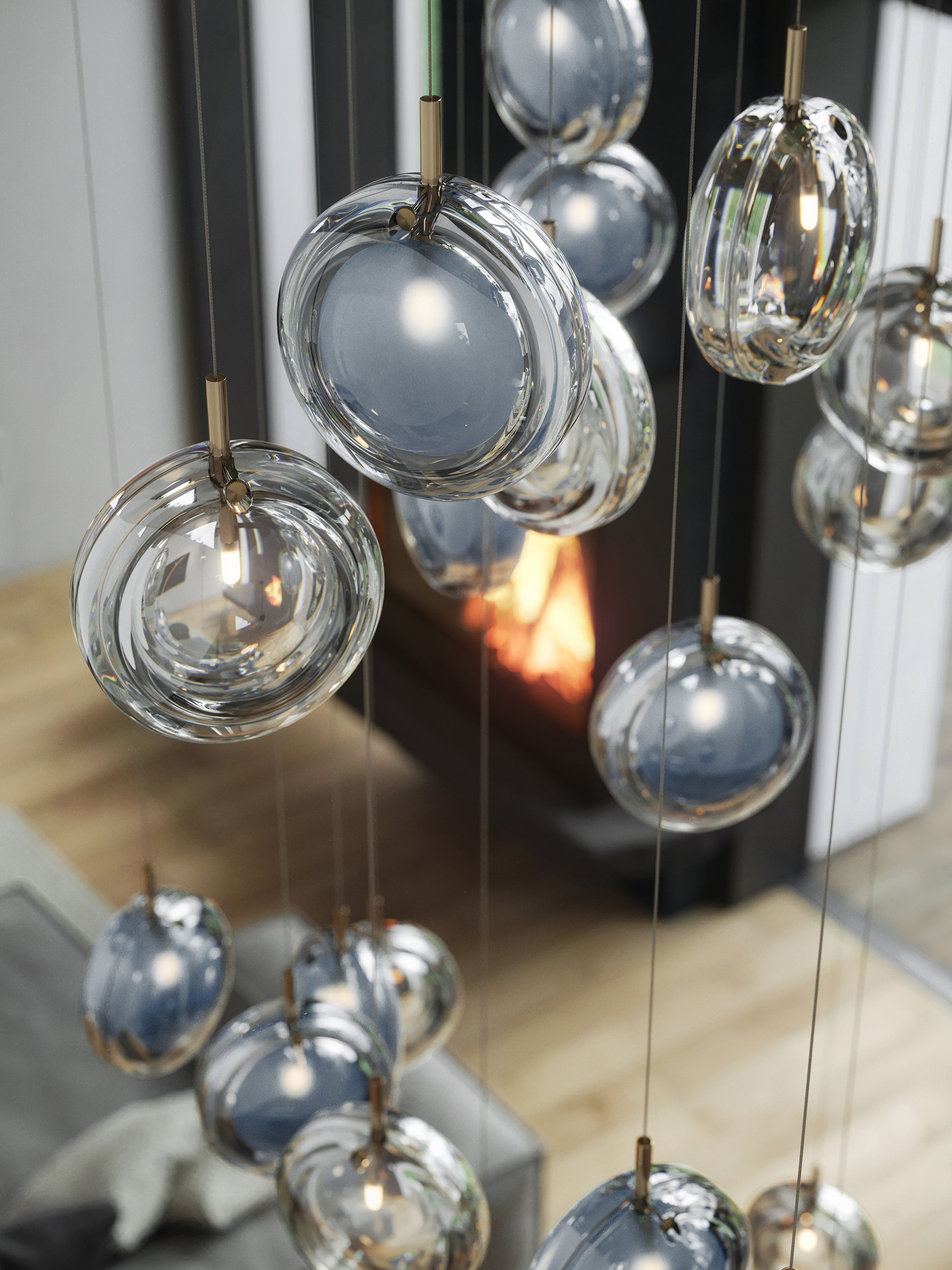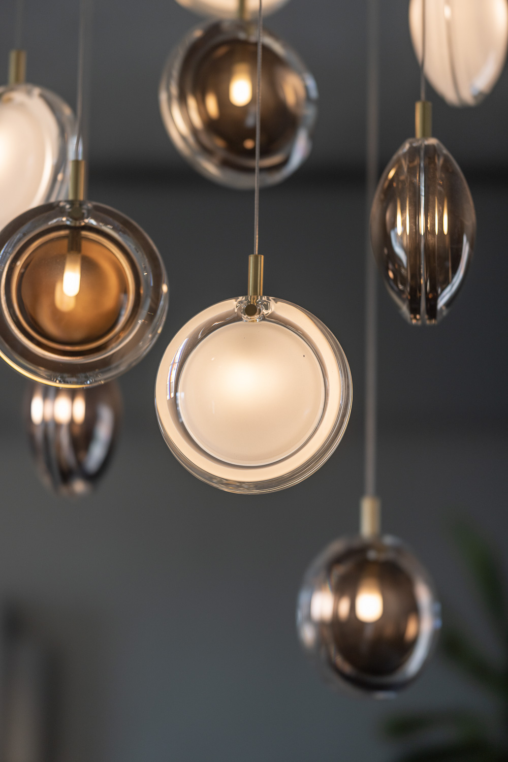 2つのレンズが調和して内部の光源を包み込み、音色のように光のシンフォニーを奏でるLensコレクション。