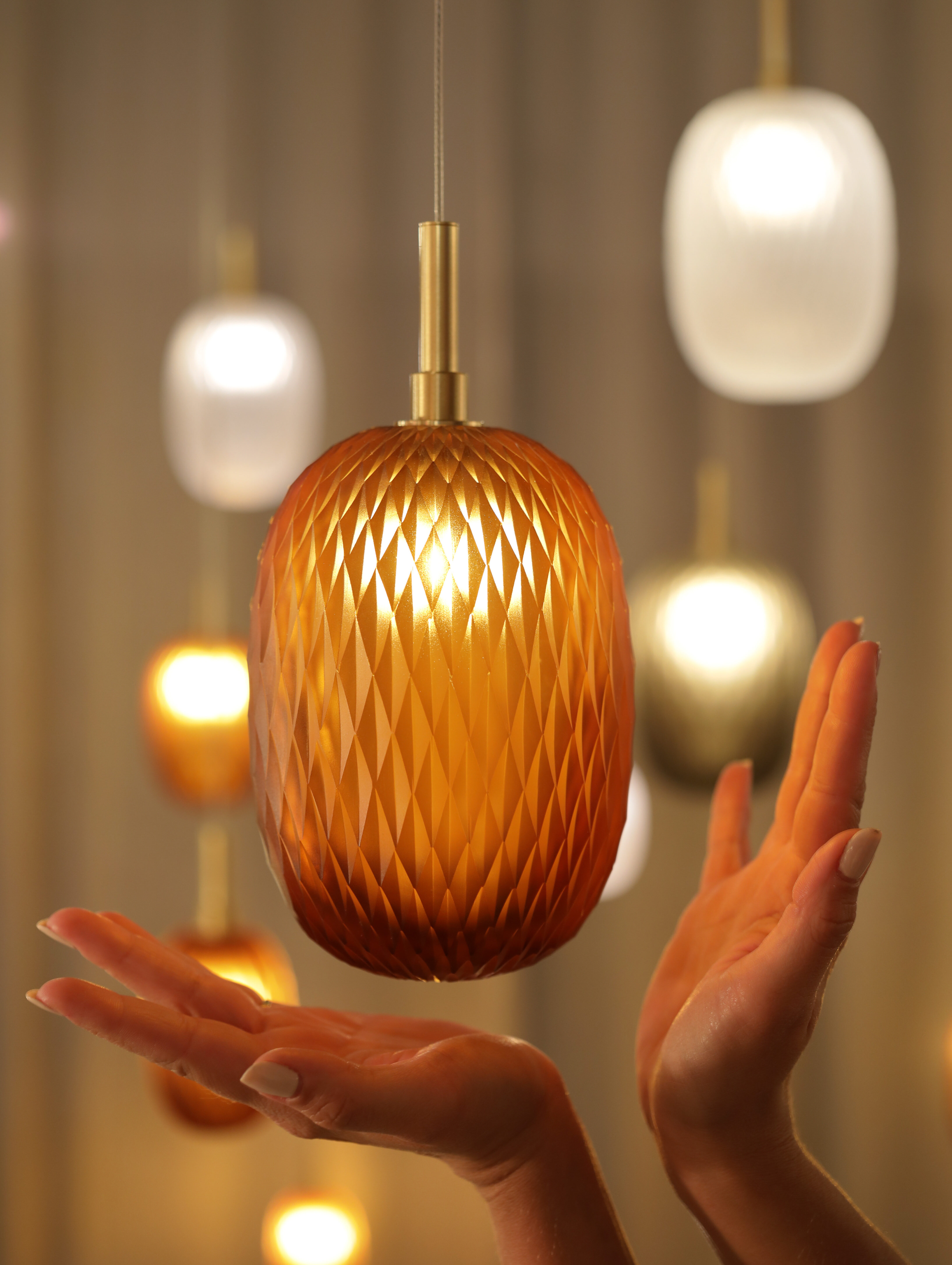 Rückl による手吹きクリスタルに施された繊細な幾何学的カットは、光が入るとより卓越した表情を生み出します。