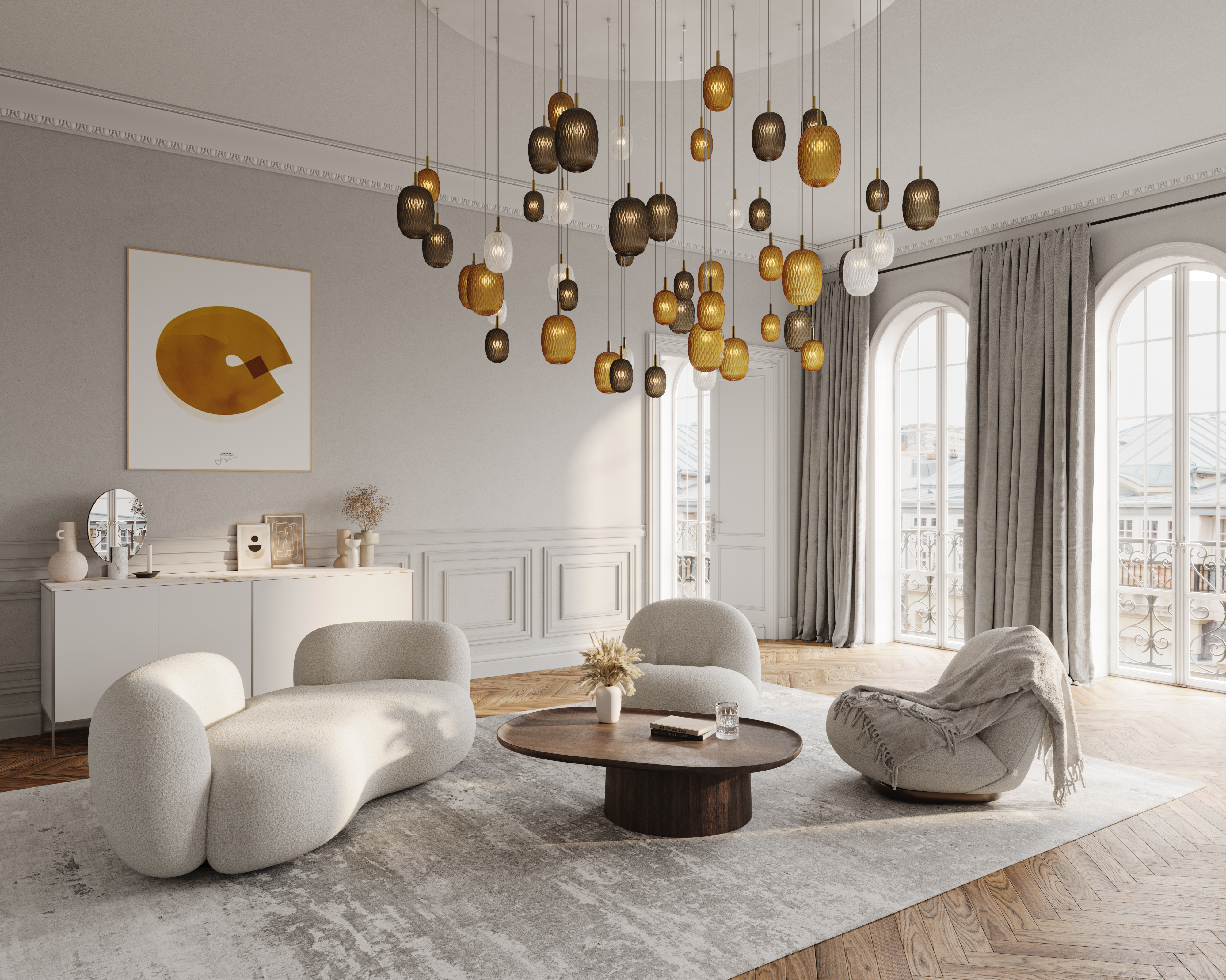 遥か彼方の星空のように、一見小さな照明のオブジェは個々に私たちを魅了し、