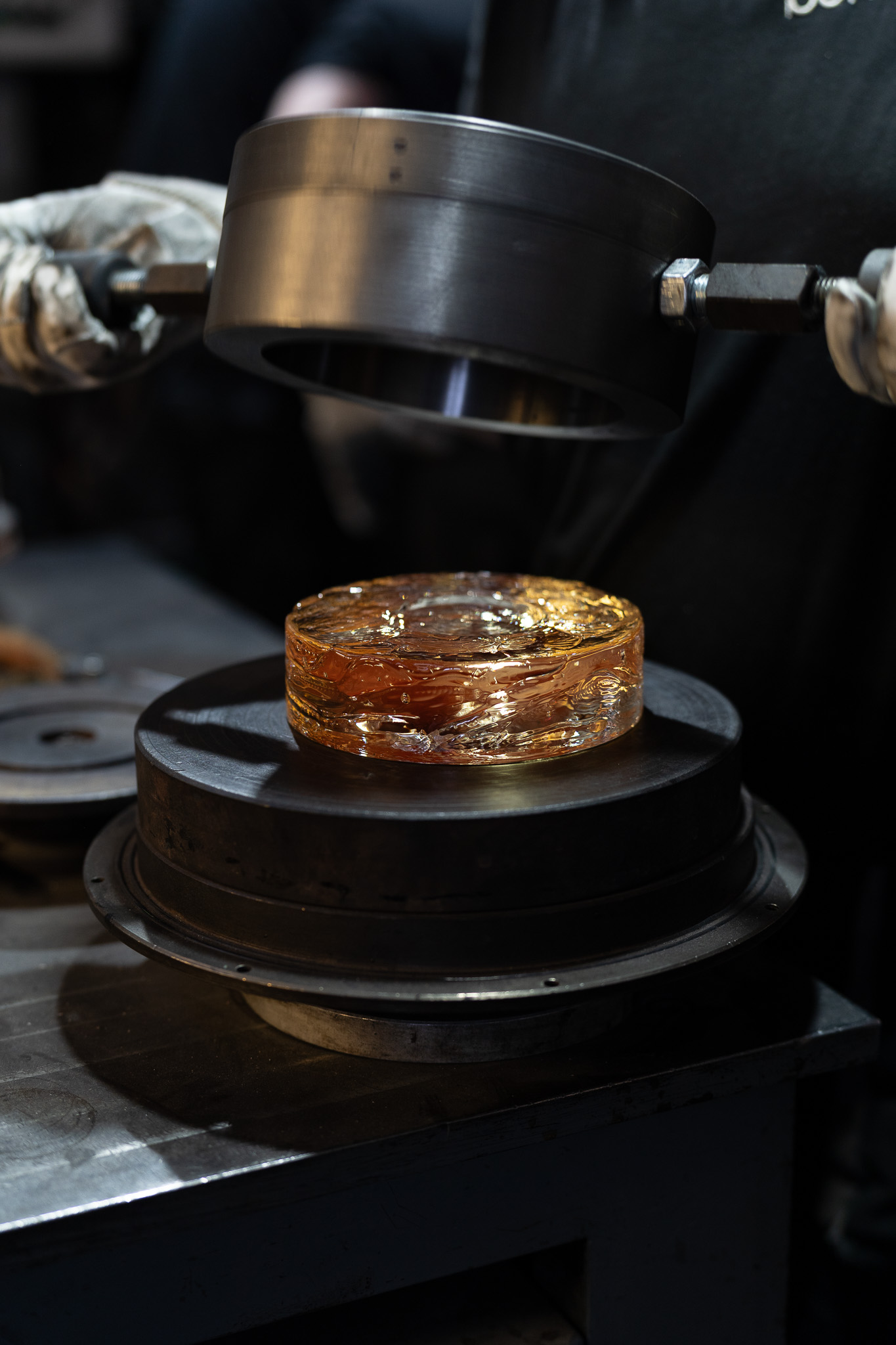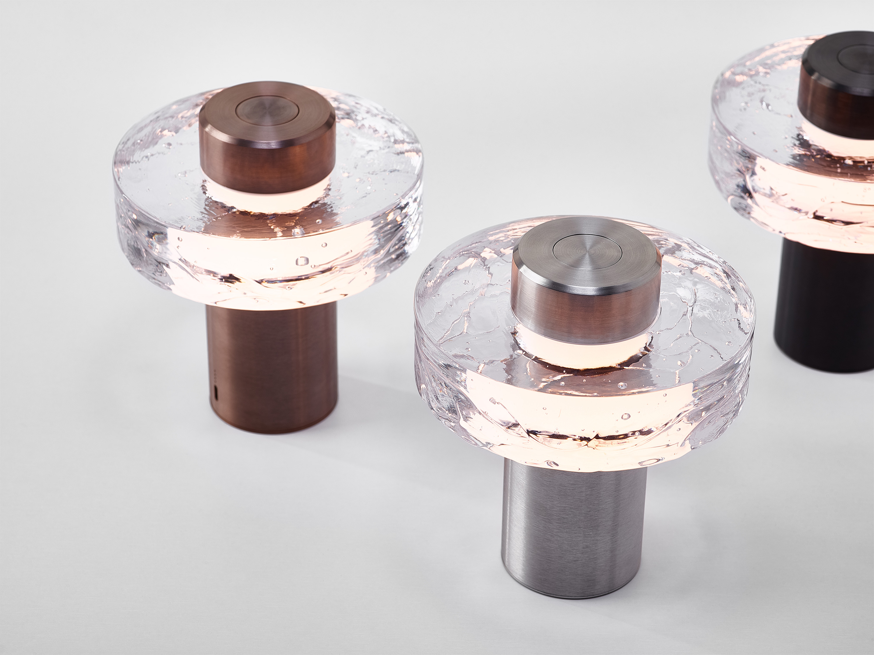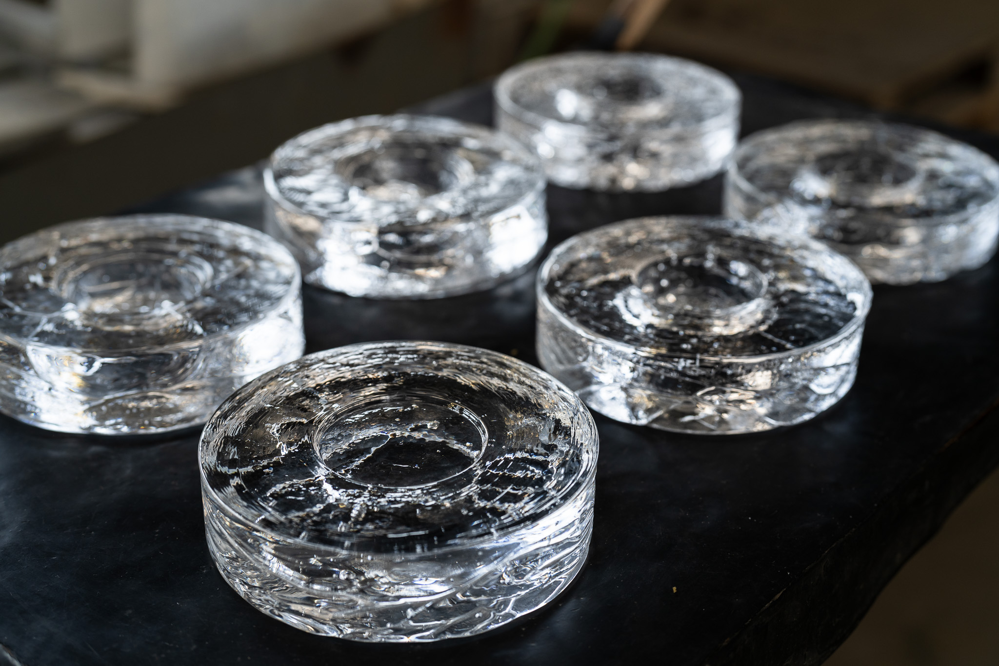 鋳造された透明ガラスの中に生まれる繊細な渦模様と、有機的に閉じ込められた小さな気泡は、まるで星々のようにきらめきます。