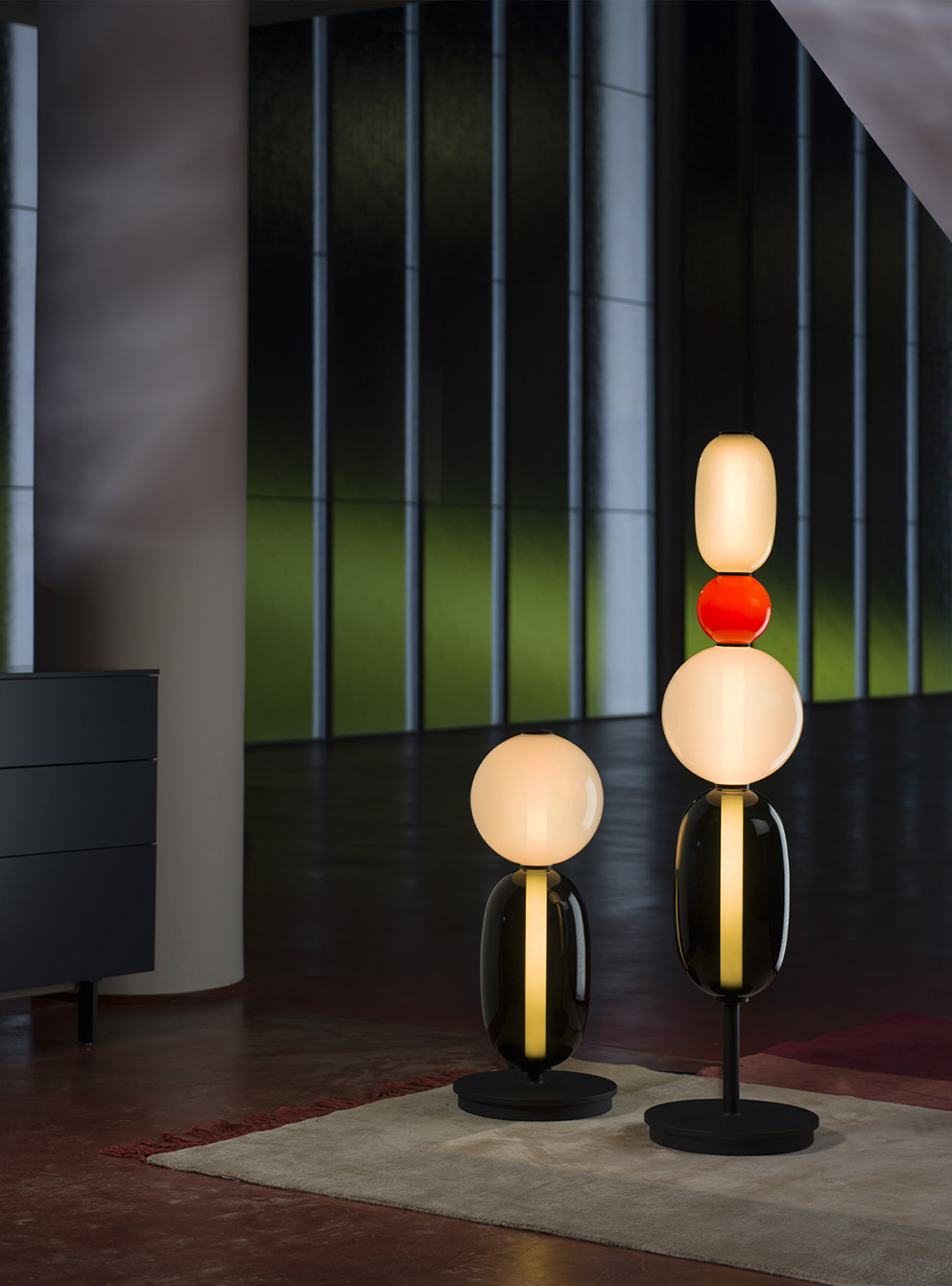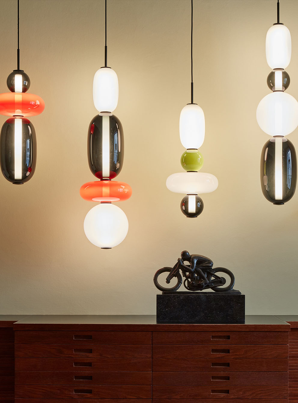 小石(=Pebbles)というネーミングですが、ジュエリーのような連なりが美しいガラスグローブは、様々な形と色で構成されている遊びごころあふれるコレクションです。