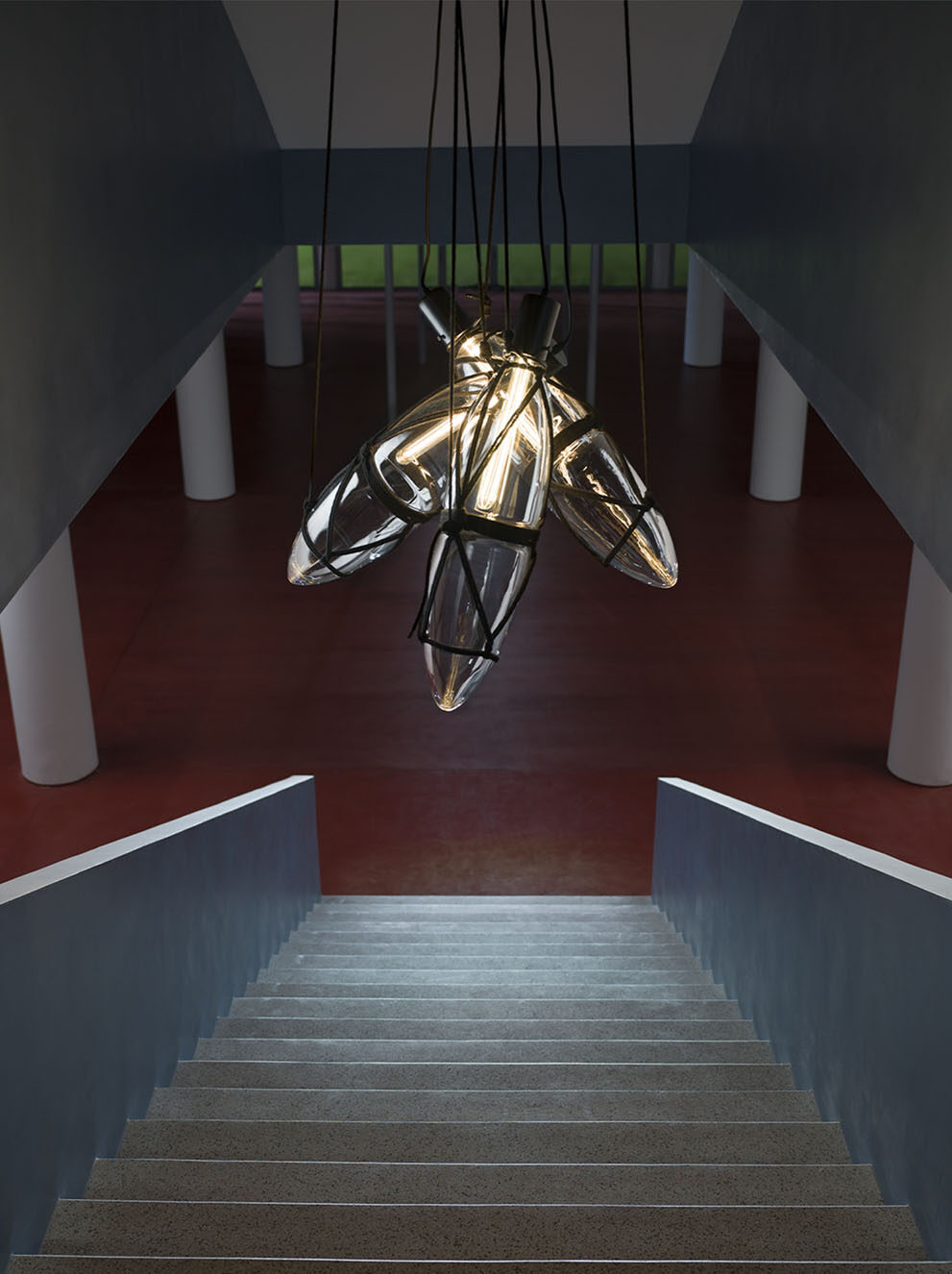 ロープで物を縛るだけではなく、線や輪の中に隠されたコミュニケーションの意味を持つ、日本の「緊縛の美」から連想されたShibari。 結び目の中にクリスタルガラスを閉じ込めたコレクションは、可変的なコンポジションを作り出します。 その大胆な美しさは、単体でも、彫刻作品を思わせる集合体でも、まさにアートオブジェと呼べるものです。