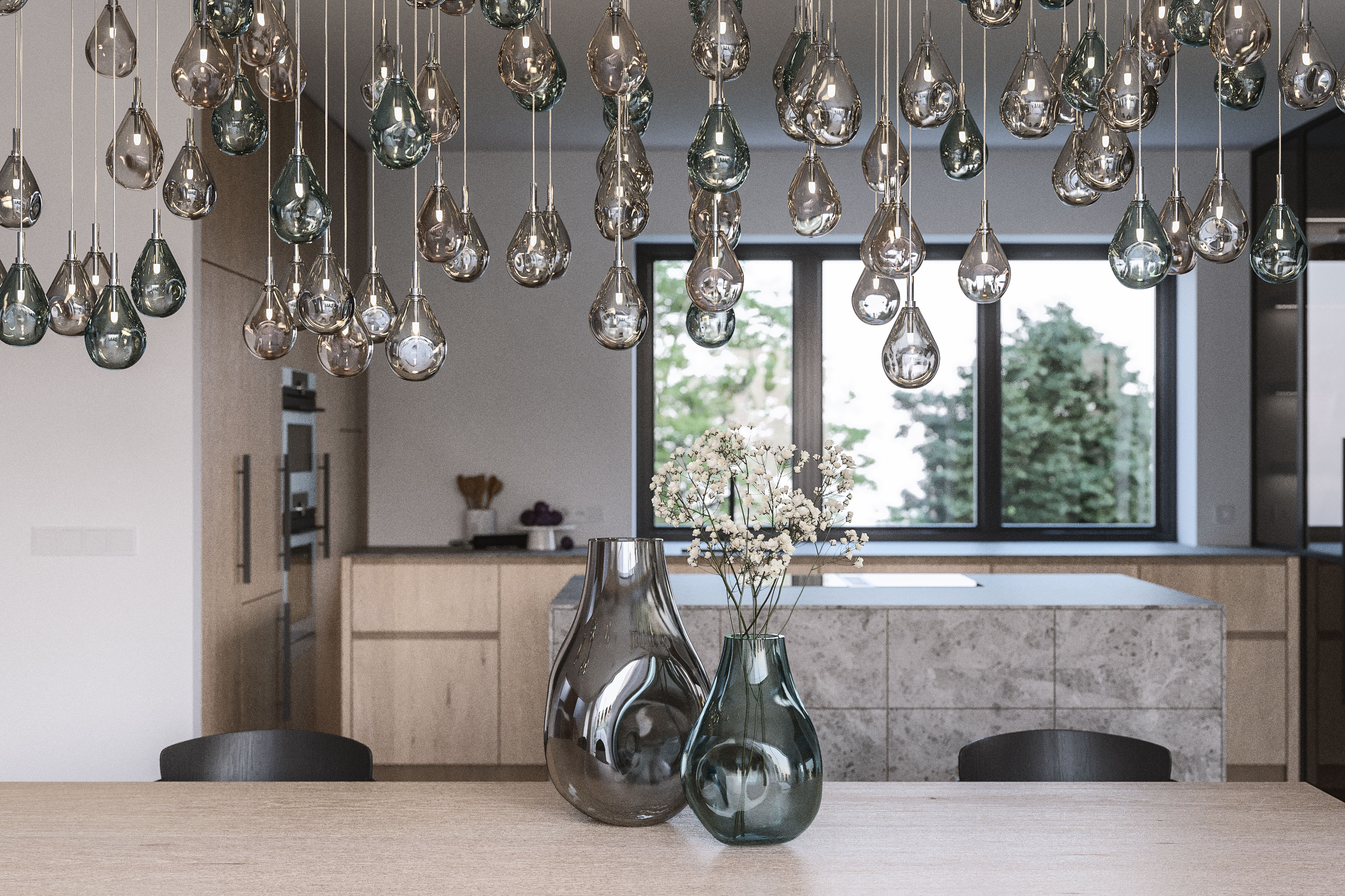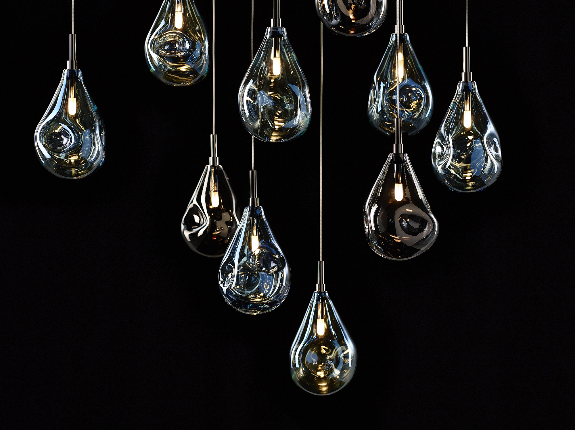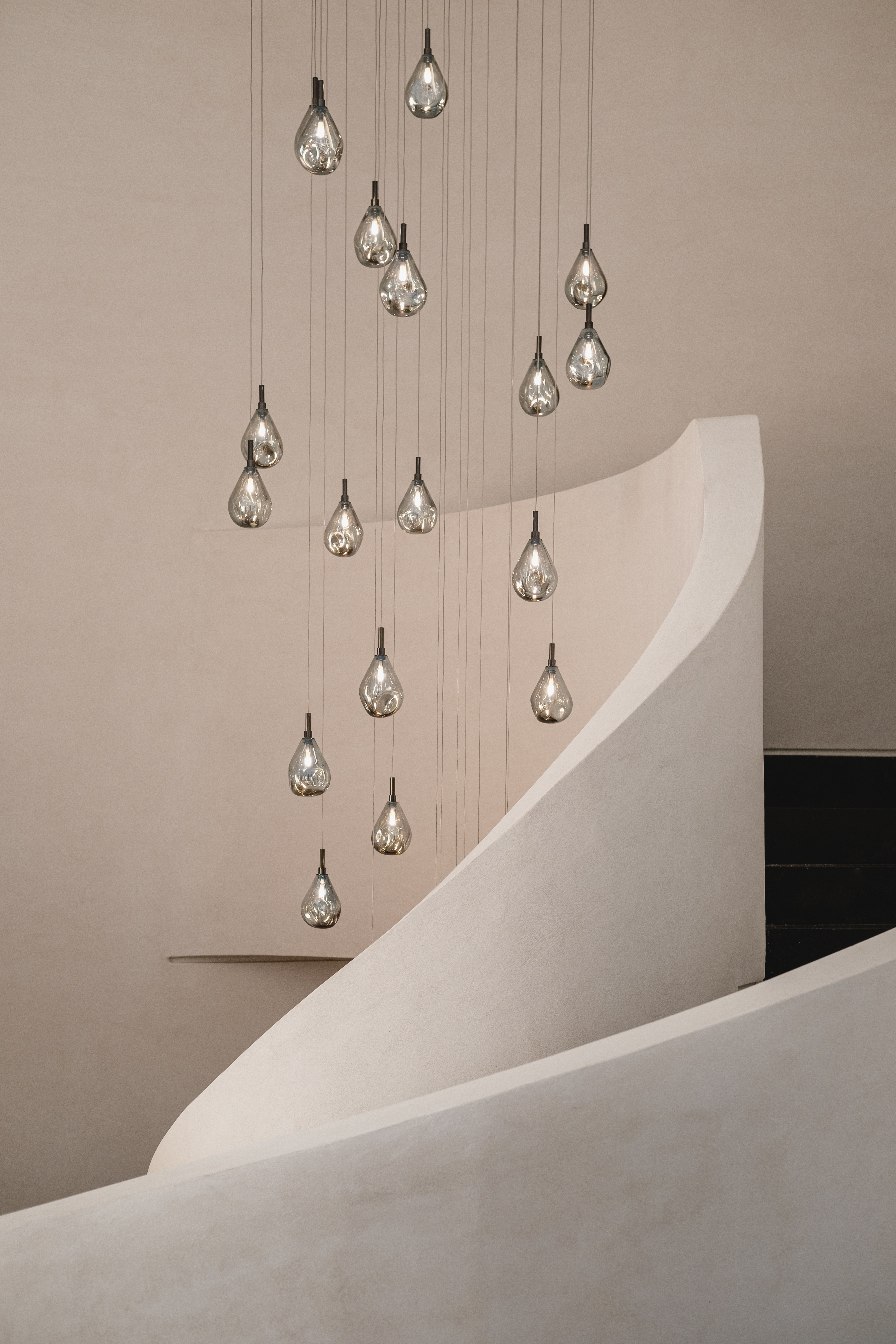 手拭き製法で作られるため、ひとつとして同じ形がなく、カラー、サイズ、数の組み合わせにより、印象的な空間を作り上げます。