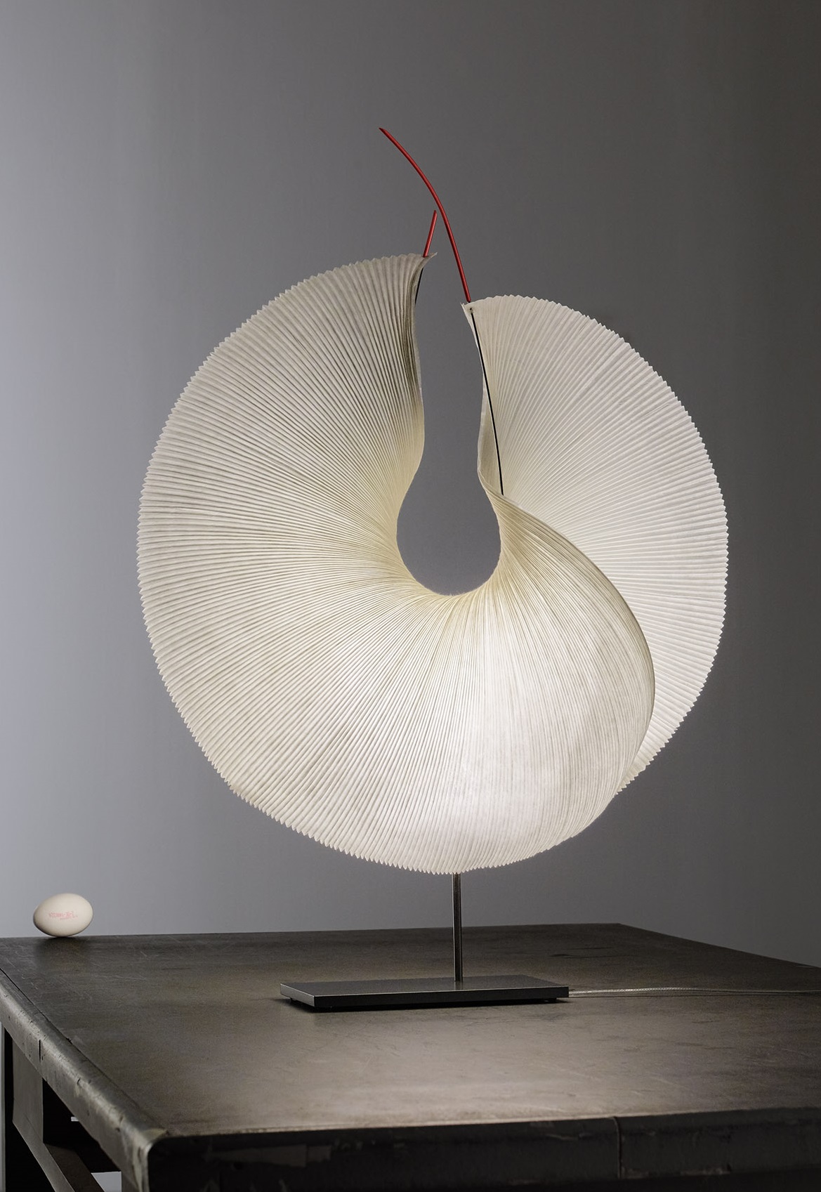 灯を長年愛し、和紙を材料にした照明を考え、ドイツのテキスタイル